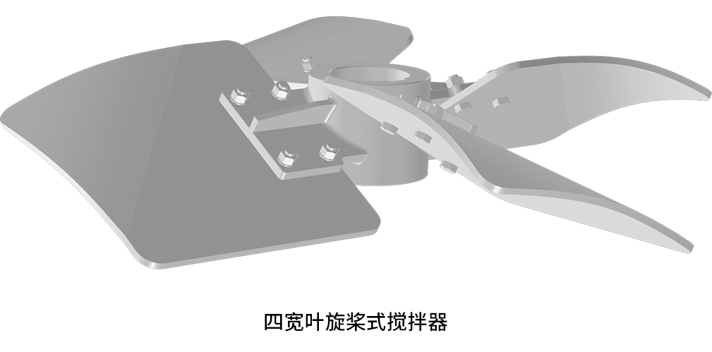 上部四寬葉旋槳式攪拌器的多層設計提供大了更大的接觸面積和剪切力,使得物料的攪拌更加均勻。而寬葉片設計進一步增加了攪拌過程中液體的流動性,有效地減少了死角,提高了混合效率 。